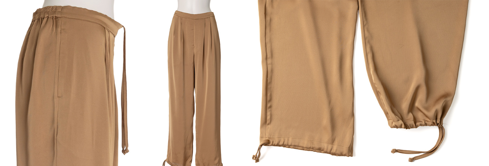 隠しゴム入りの裾紐は、結んだままでも伸縮するので