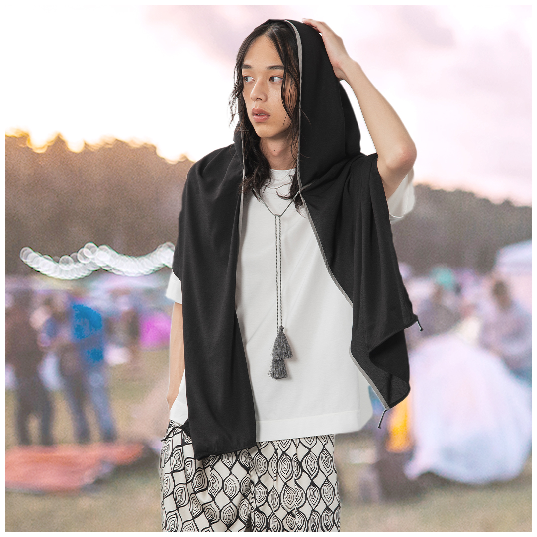 【夜】肌寒さも余韻も味わえる。羽織れる多機能ストールで快適なナイトフェススタイル