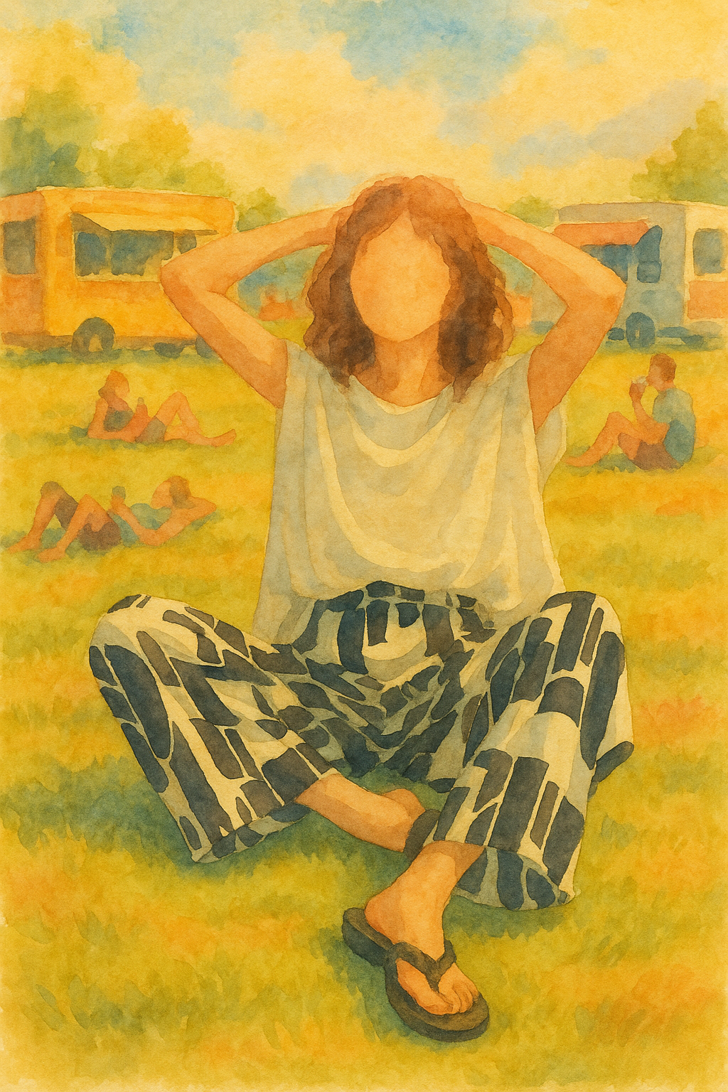 2025年フジロック。前夜祭と移動日を含めて、4泊5日。 ボーホーストールとペラクスパンツで過ごしてみたら…「これ1セットで大丈夫、っていうかこれじゃなきゃムリかも!」と確信! 旅でもフェスでも、快適さはもちろんのこと、自分らしくいられるってうれしい。