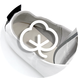 植物性由来の人工皮革やコットン、紙、再生プラスチックなどを使用しました。