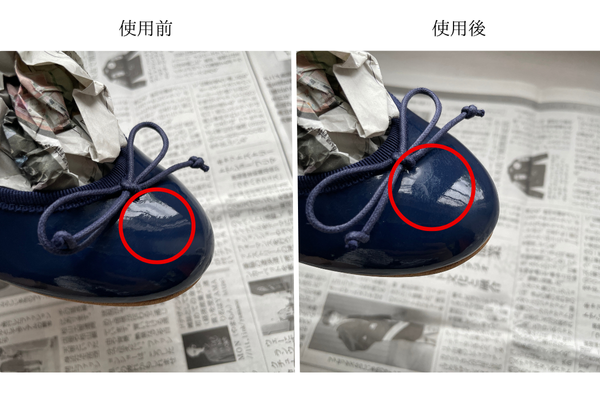 画像では少し分かりにくいですが、使用前はしっかりツヤ感のあったシューズが、少し曇ったような見た目になってしまいました。