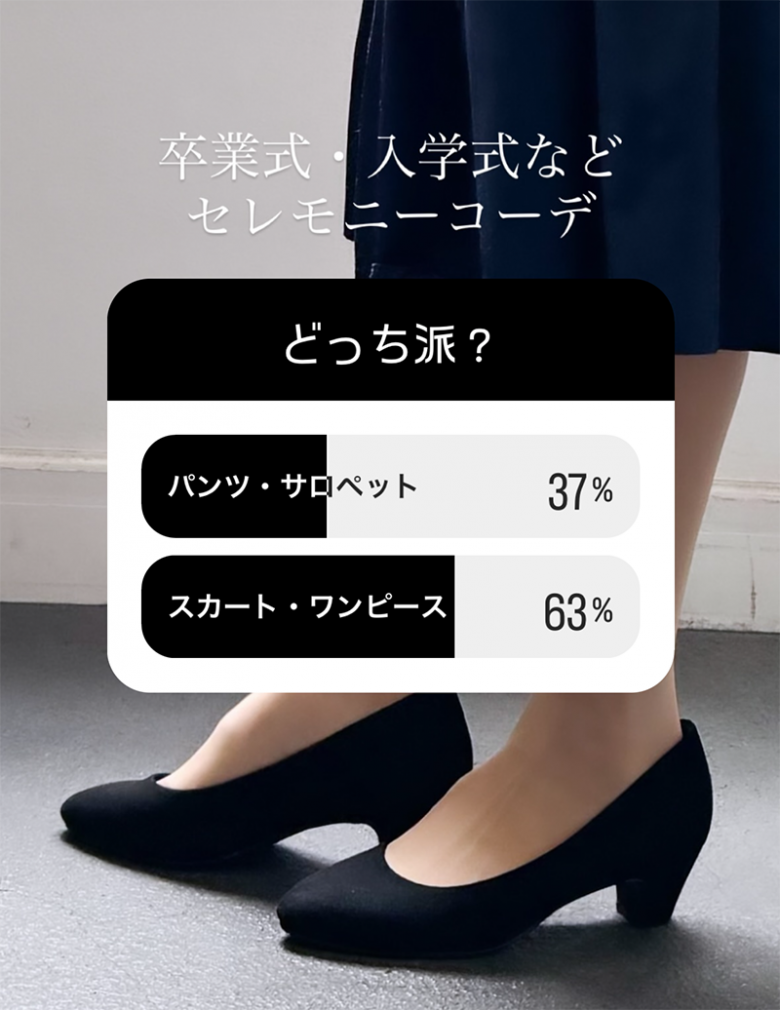 卒業式・入学式のセレモニーコーディネートには、スカート・ワンピースを考えている方が多いよう。