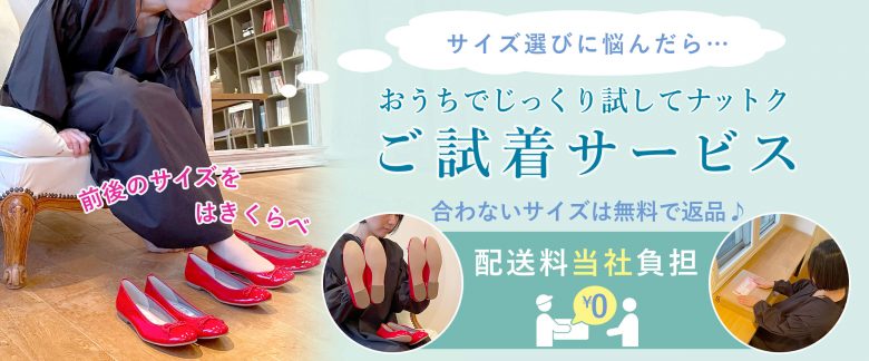 ファルファーレオンラインショップでは、ご自宅でサイズを試せる「ご試着サービス」をご用意しております。