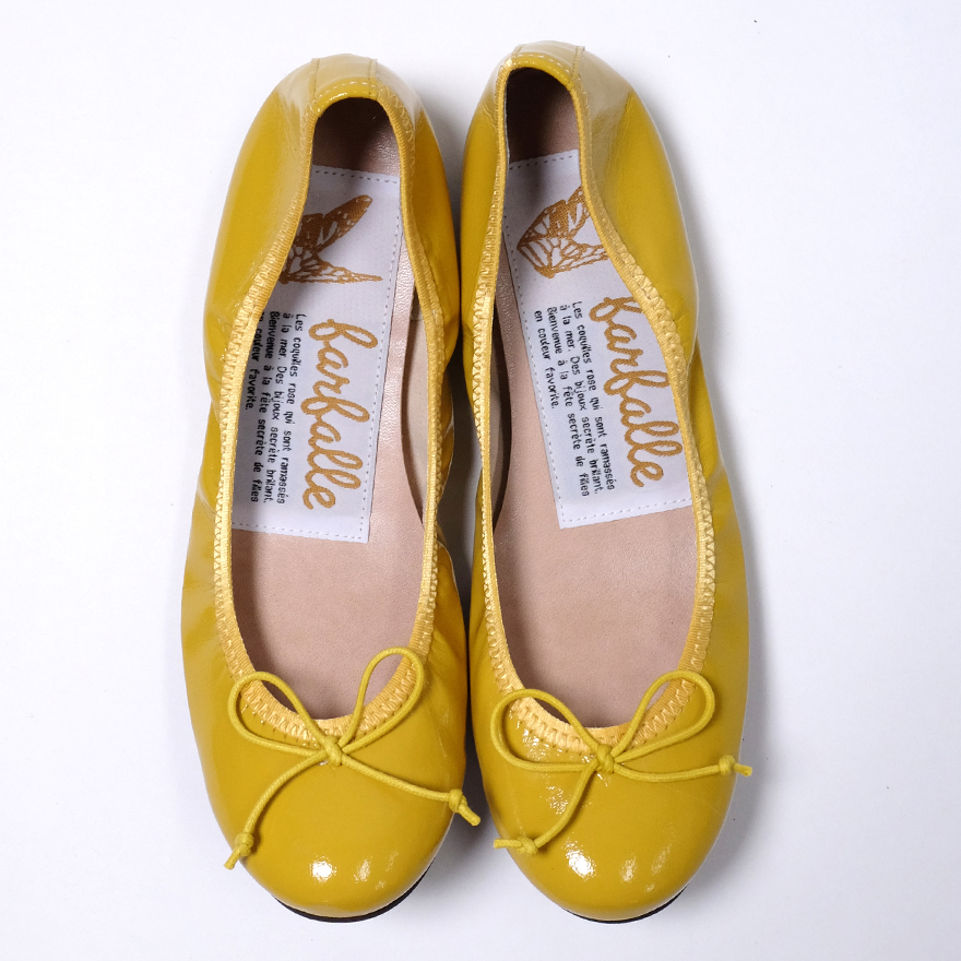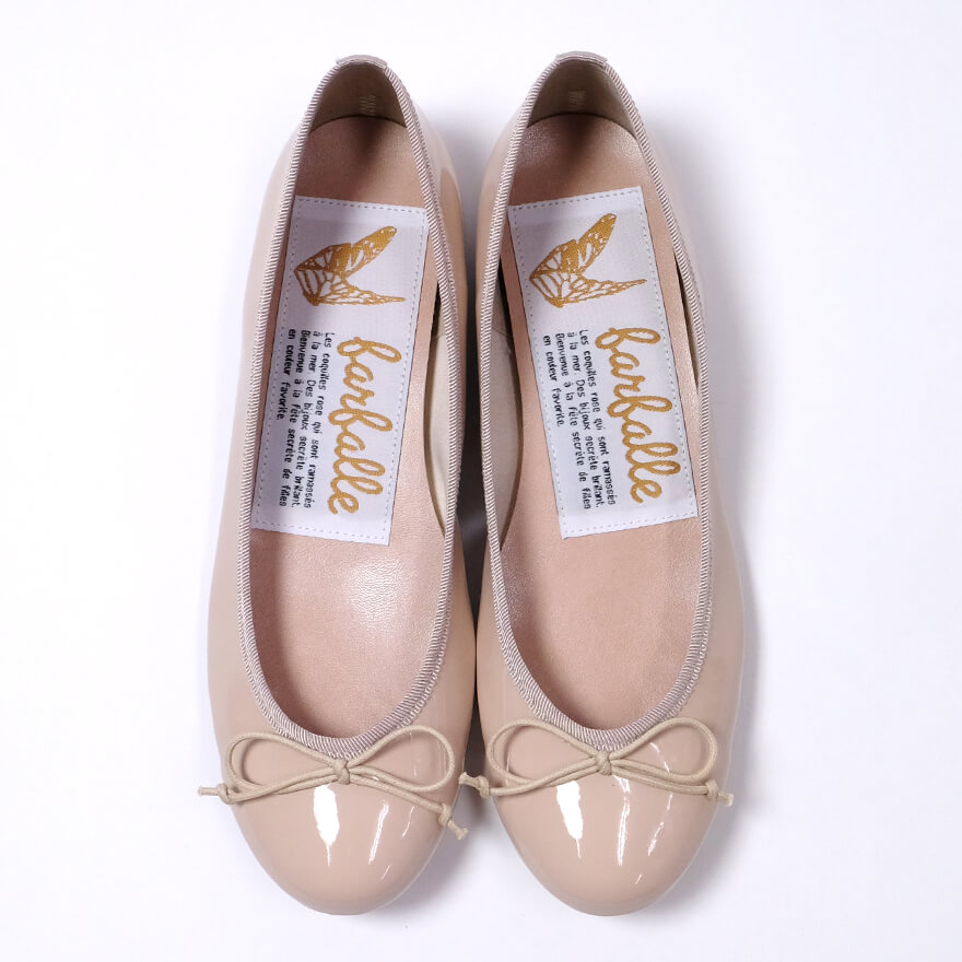 【濡れてしまった場合は?】 farfalleのエナメルバレエシリーズは合成皮革のエナメルなので 雨の日に履いていただいてもある程度撥水します。(※レインシューズのお作りではありません) 本革と違い、天候に左右されず履けますが、濡れてしまった場合は表面の水滴を 柔らかい布で拭き取り、内側にも水分が浸透している場合は晴れた日に影干しして しっかり乾かしたほうがきれいに長く履いて頂けます。