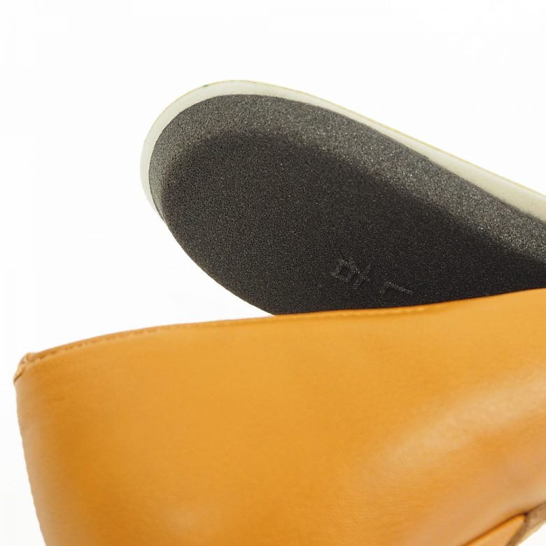 それを解消するために、7㎝ヒールマインには踵(かかと)から土踏まずにかけて、上の写真のような厚みのあるカップインソールを敷いています。