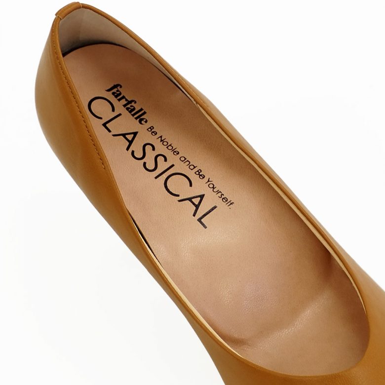 三井化学株式会社の新素材・形状記憶シート【HUMOFIT ヒューモフィット】をインソール全面に敷き、体圧分散することで、ハイヒールにありがちな地面からの衝撃による指先や踵の痛みや疲れを軽減してくれる、ファルファーレクラシカル。
