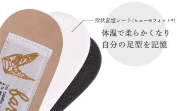 形状記憶するヒューモフィット(R)を全面に敷いたfarfalleオリジナルのインソール。