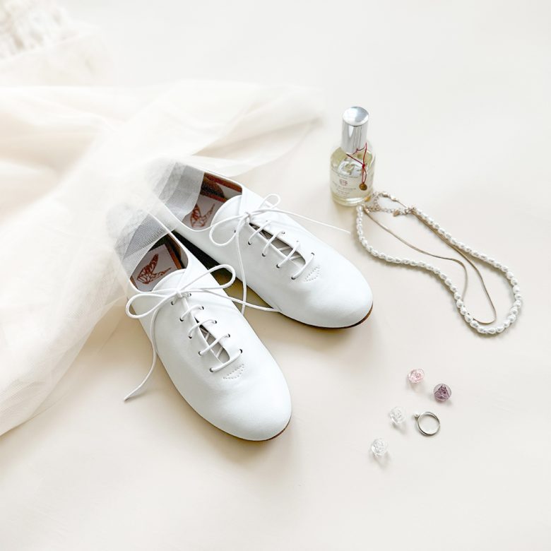 つま先部分がぽってりしていないすっきりとしたシルエットは、マニッシュさや学生用シューズのような重厚感がなく、エレガントな装いにもマッチします。