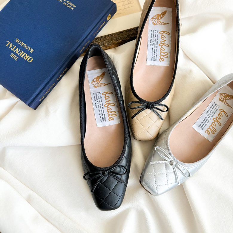 神戸生まれのバレエシューズブランド「farfalle(ファルファーレ)」のバレエシューズは、クッション性の高いインソールと柔らかくしなやかなアッパー(甲材)がで足を優しく包みこむような履き心地と、エレガントな雰囲気を損なわない上品なデザインが魅力。