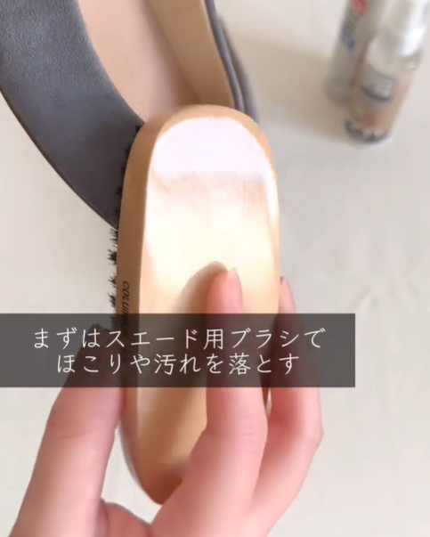 100均などで手に入るゴム素材のスエード用ブラシもあると、固まった毛並みをほぐしたり起毛させてくれる役割もあって、より丁寧なケアができます!