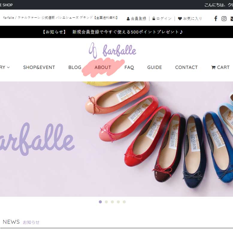 ファルファーレの定番商品【エナメルバレエ】が愛される訳をご紹介しているページです。