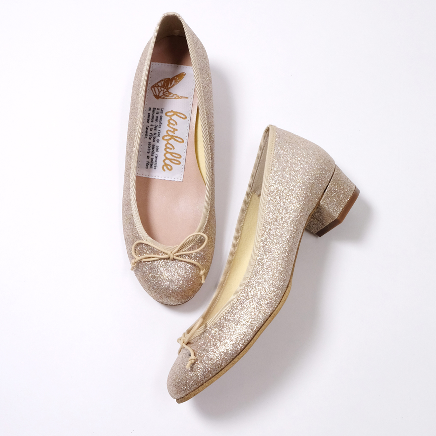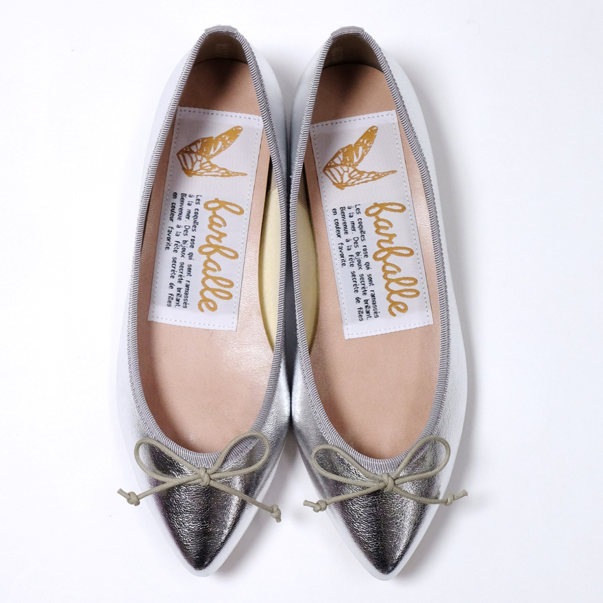 farfalleといえばエナメルバレエが定番ですが、卒業・入学式シーズンは特に人気なグリッター&メタリックカラー。こんな風にお上品なカッチリコーデにもハマるんです!!