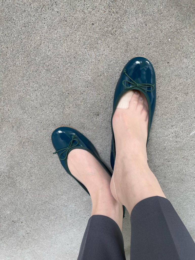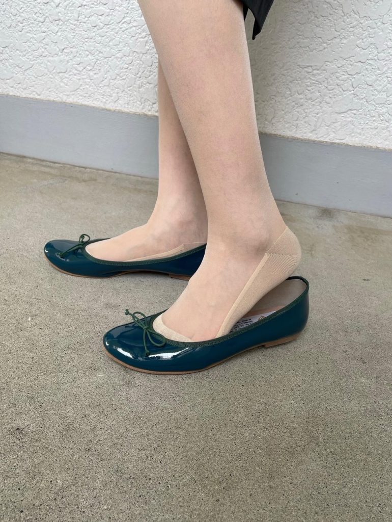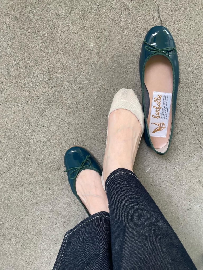 浅履きデザインのファルファーレのバレエシューズでも、フットカバーがはみ出ないのでダサくならず綺麗に履けるのは嬉しいですね!