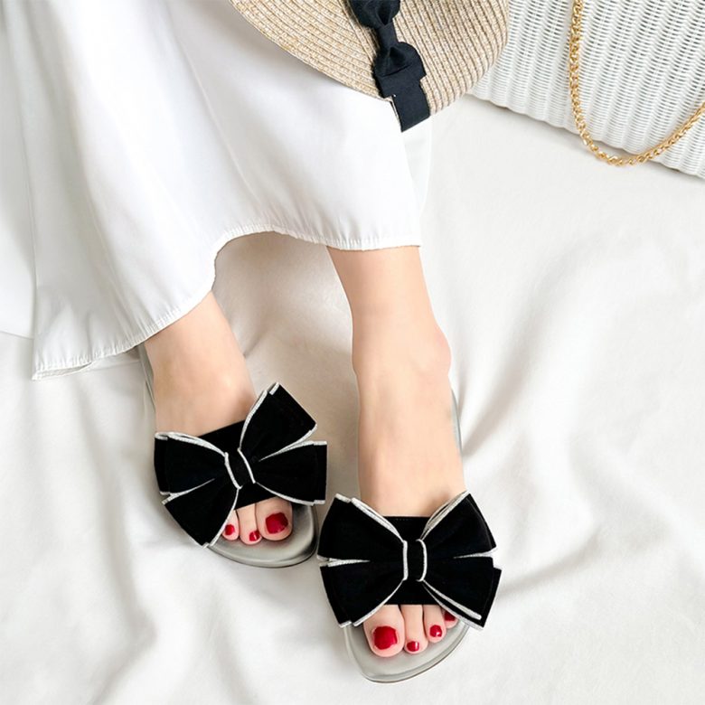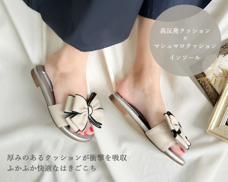 ボリューム感のある大きなリボンが足元に華やかさを添える、夏の足元に欠かせないリラクシーなミュール「ポロン」。