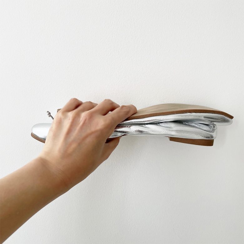 かかとを柔らかく仕立てているので、コンパクトにまとめても型崩れしにくく持ち運びにも便利◎