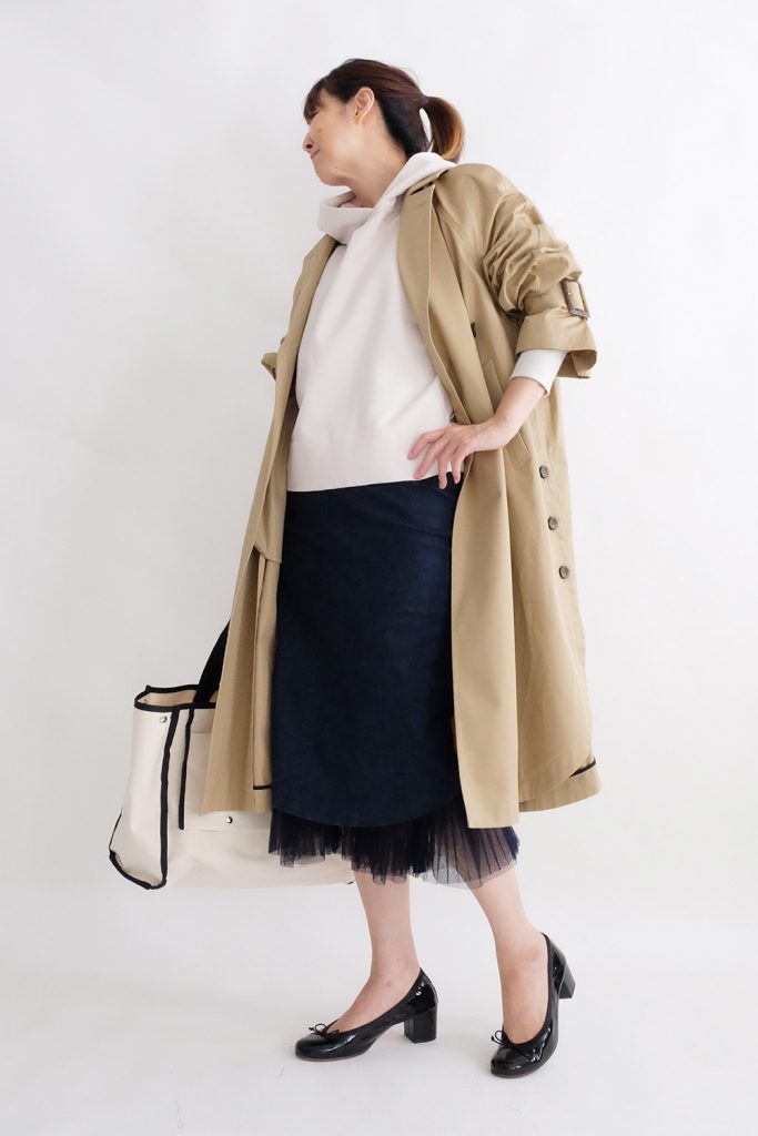さっとトレンチコートを羽織ればあっという間にFUDGEやCLUELのパリのファッションスナップに出てきそうなスタイルに変身!