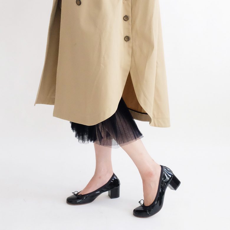 レディーストレンチコートを使った2021年おすすめの秋冬コーディネートをファルファーレのパンプスやバレエシューズなどの靴と一緒に、40代・アラフィフのスタッフが実際に着用してご紹介します。