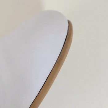 デザインによって、コバの処理の仕方を変えるのが一般的なのですが、wfの靴は柔らかく空気感のあるデザインなので「丸コバ」という処理をしています。