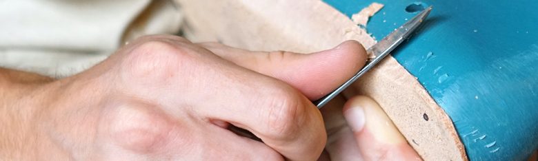 例えば、靴底のサイドの部分、ここを「コバ」って呼ぶのですが、この処理はひとつづつ手作業で削っていきます。
