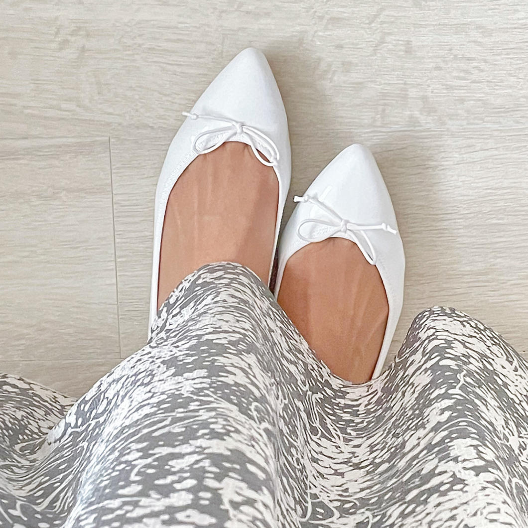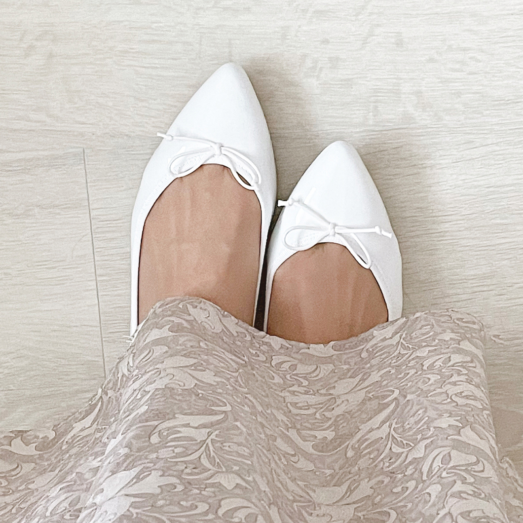 足元はあえてヒール無しのバレエシューズを合わせることで、決めすぎずに抜け感のあるコーディネートに仕上げました!