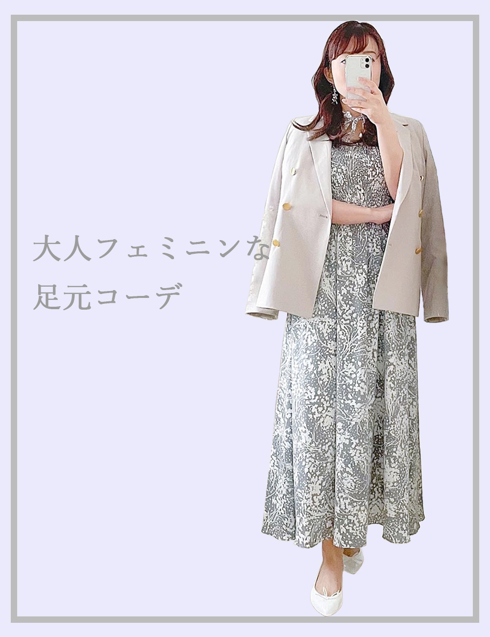 足元はあえてヒール無しのバレエシューズを合わせることで、決めすぎずに抜け感のあるコーディネートに仕上げました!