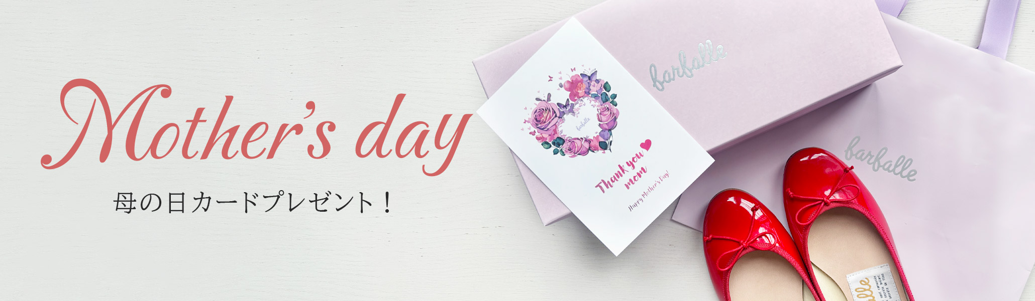 4/18(金)10:00~5/12(月)10:00までの期間中、公式オンラインショップにてシューズをお買い上げいただきますと、ご希望のお客さまにファルファーレオリジナル母の日カードをプレゼント!