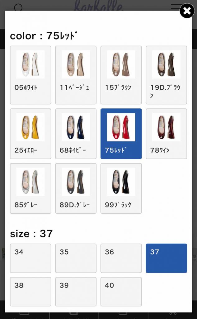 ①「カートに入れる」ボタンをタップして、ご希望のカラーとサイズをお選びください。