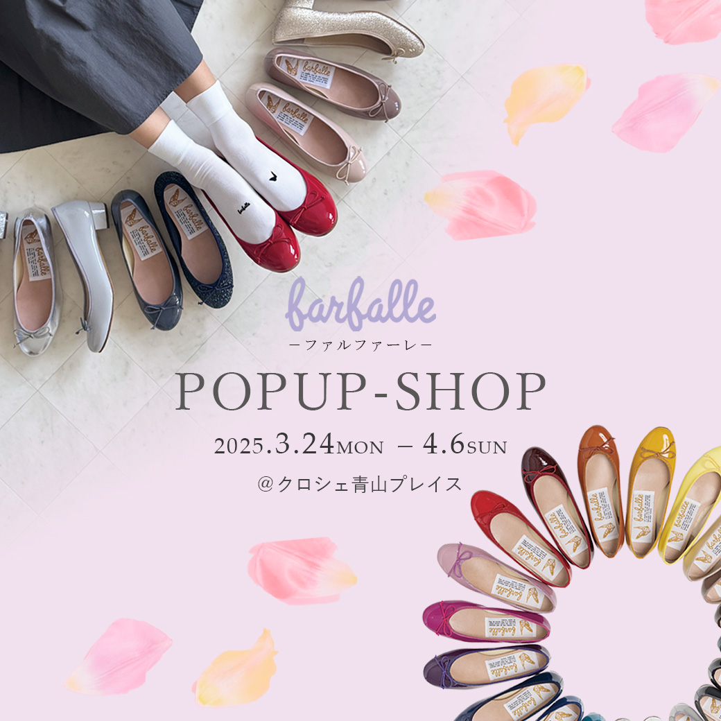 また、ポップアップのフィナーレを飾る4/4(金)~4/6(日)の3日間に青山会場にてファルファーレシューズをお買い上げいただくと、