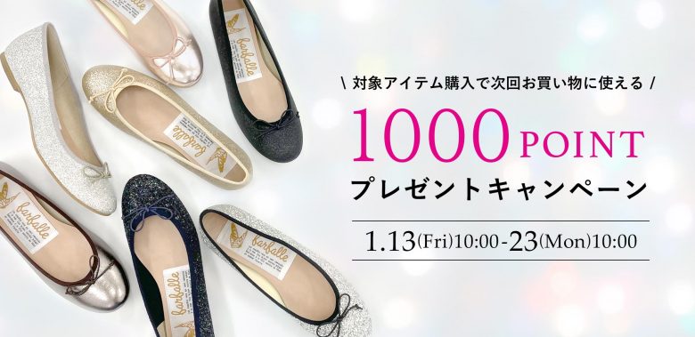 1/13(金)10:00~23(月)10:00までの期間中、下記対象商品をご購入の皆さまに次回お買い物に使える1,000ポイントをプレゼントいたします!