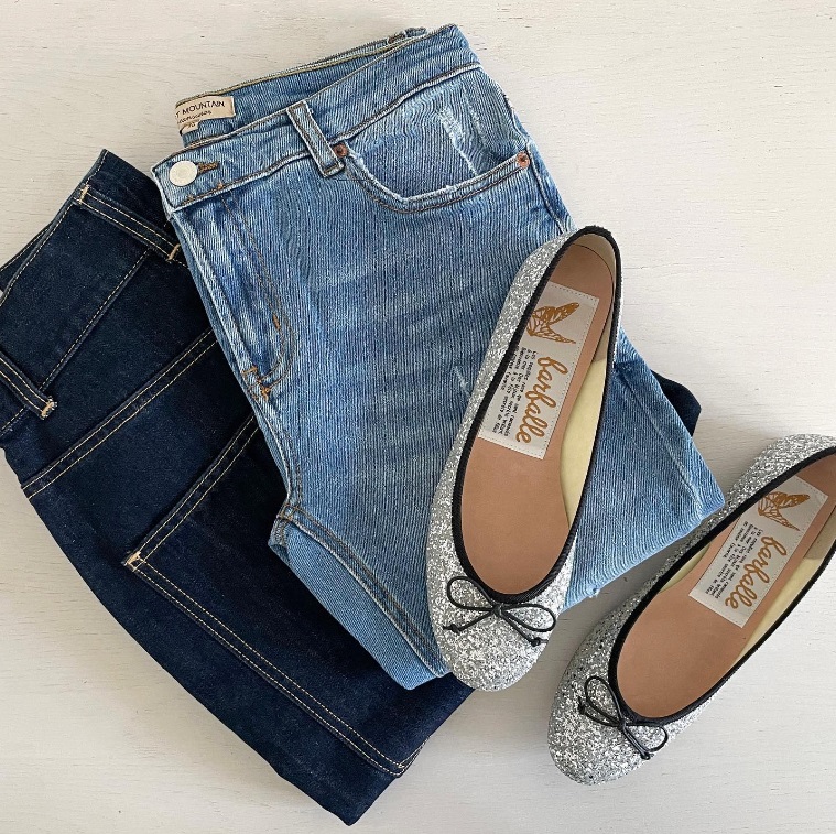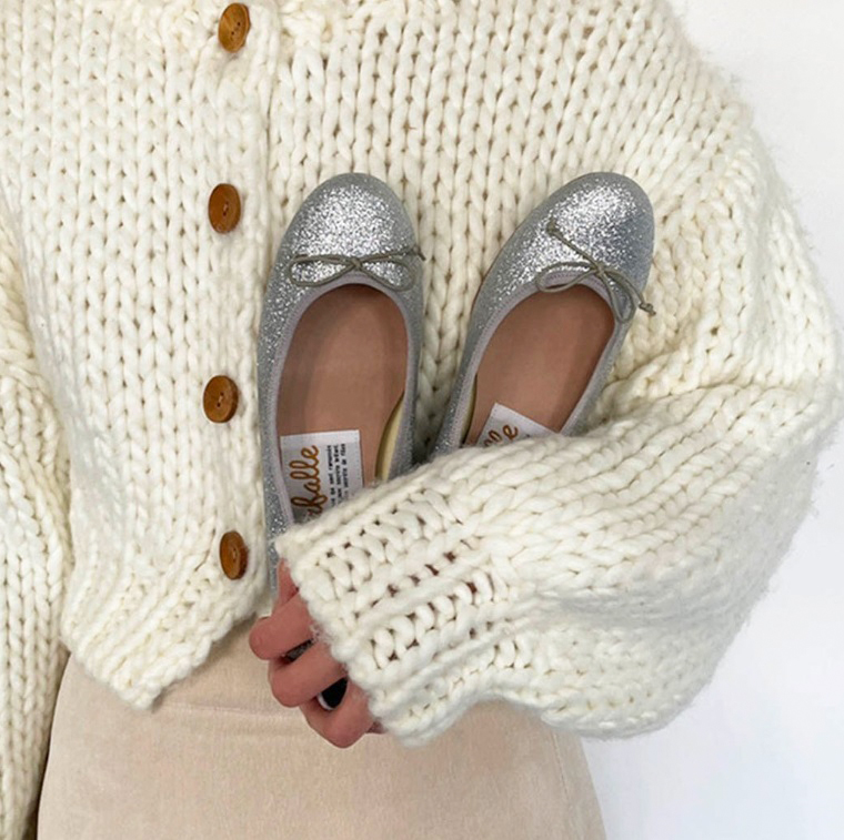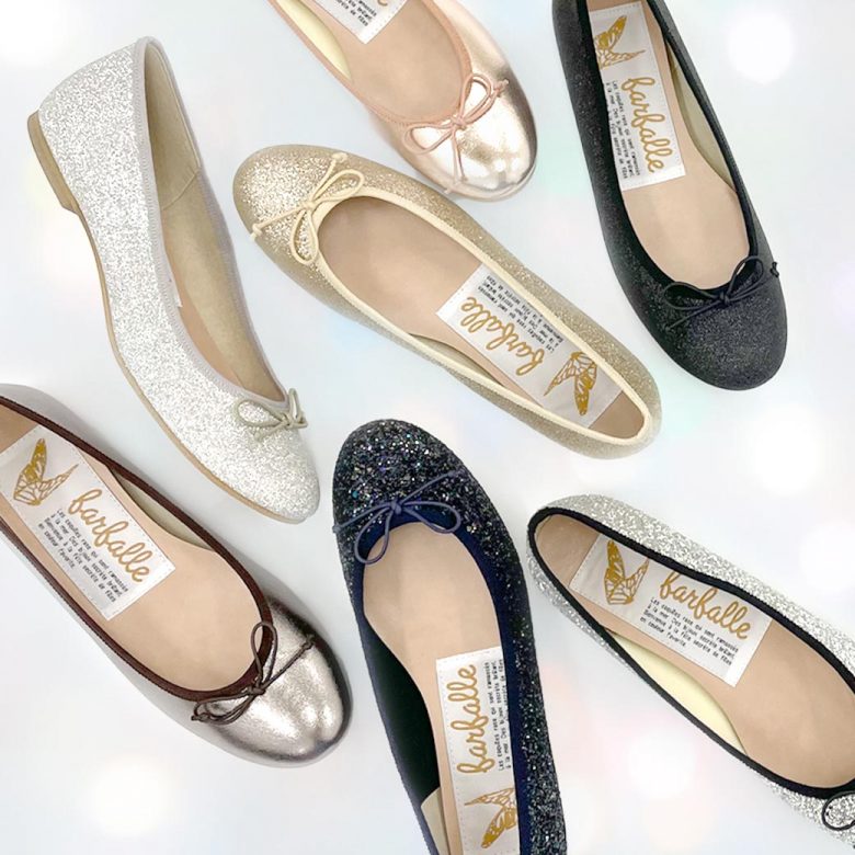 重たくなりがちな冬のコーディネートを華やかに彩るグリッターやメタルのきらきらバレエシューズ。
