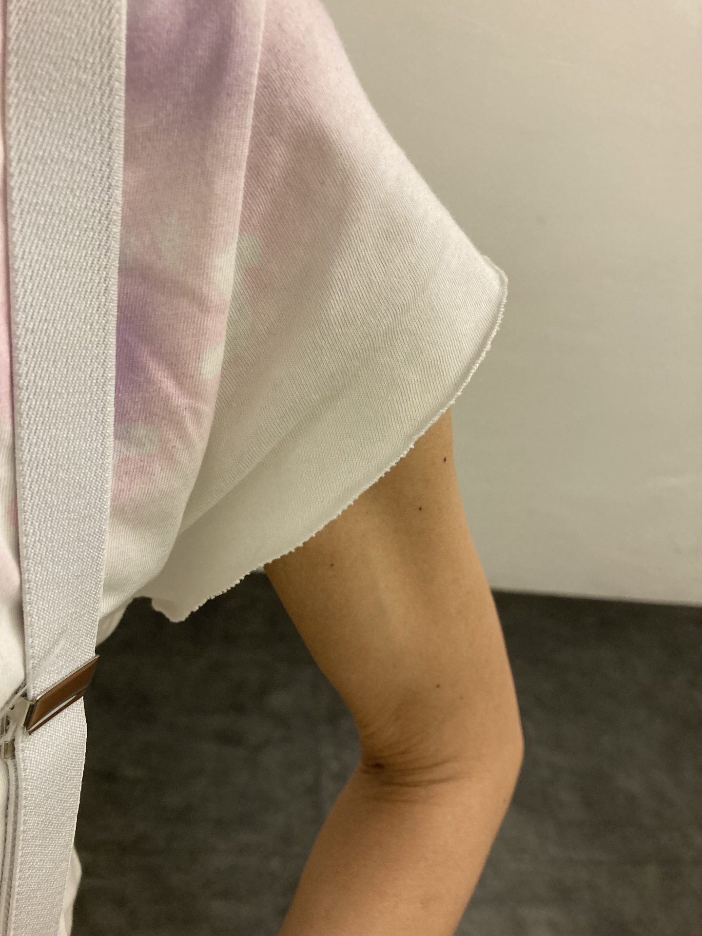 ⑦Tシャツのフロントにすそからバスト下ぐらいまでカットしてスリットを入れる。