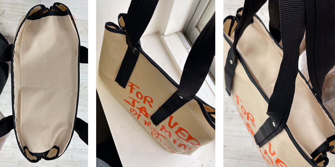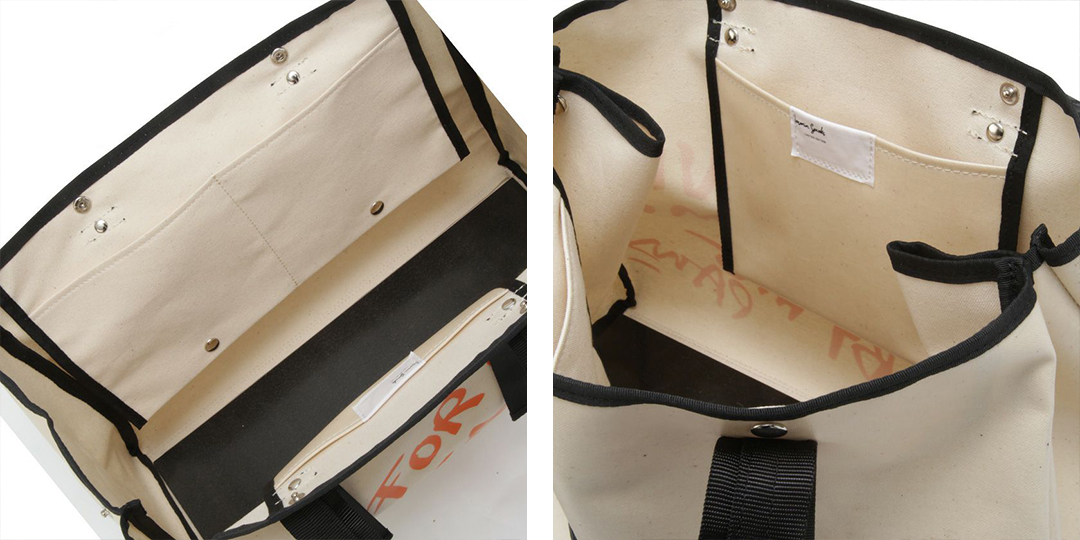 裏返せば、パイピングが印象的な上質なキャンバスコットンバッグに。