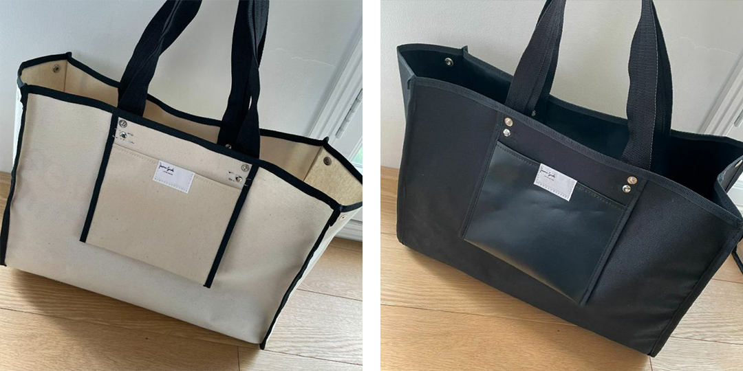 荷物が少ないときには、スナップボタンでフラットになれるスマートなトートです。
