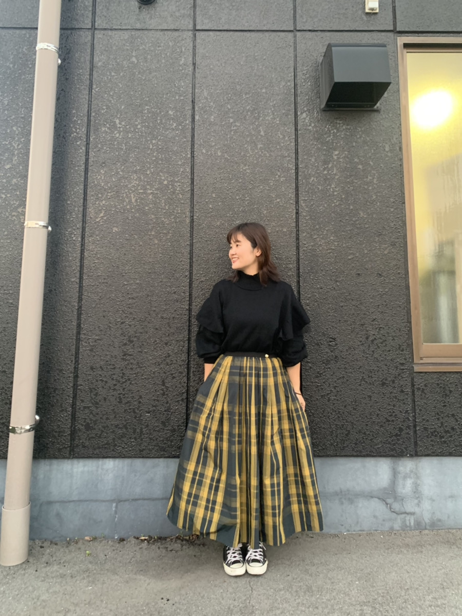 今使える秋冬ムード満点のイエローチェックスカートの魅力やスタッフコーディネートをご紹介致します。