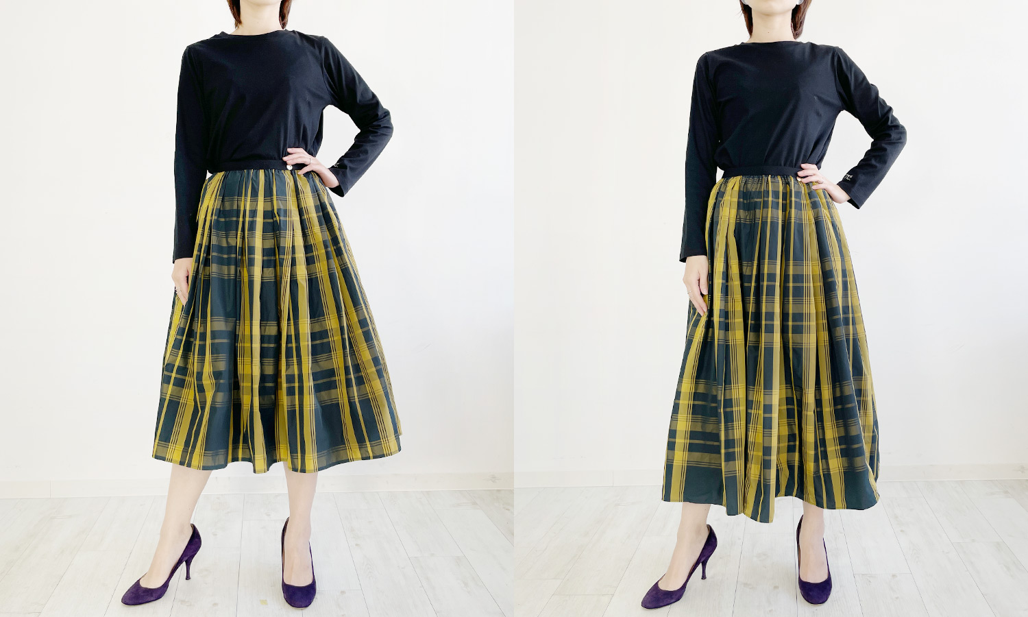 お好みのスタイリングを楽しんでいただけるよう、ミモレ丈とマキシ丈の2サイズご用意いたしました。