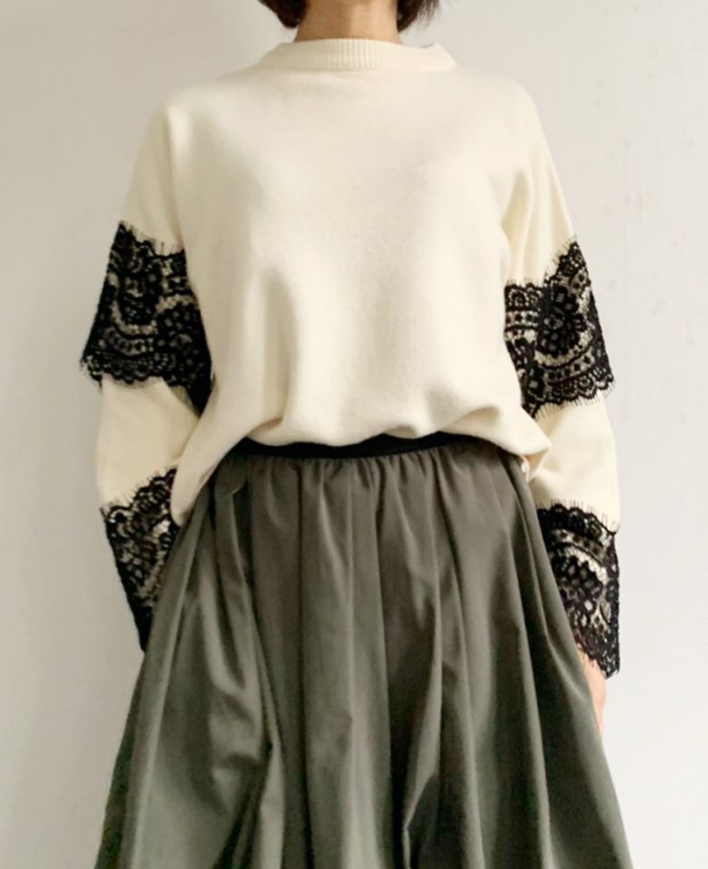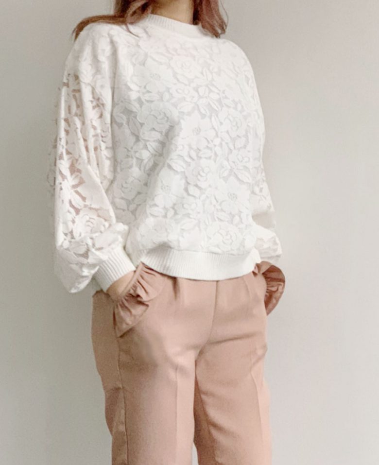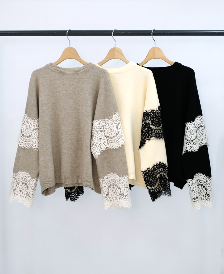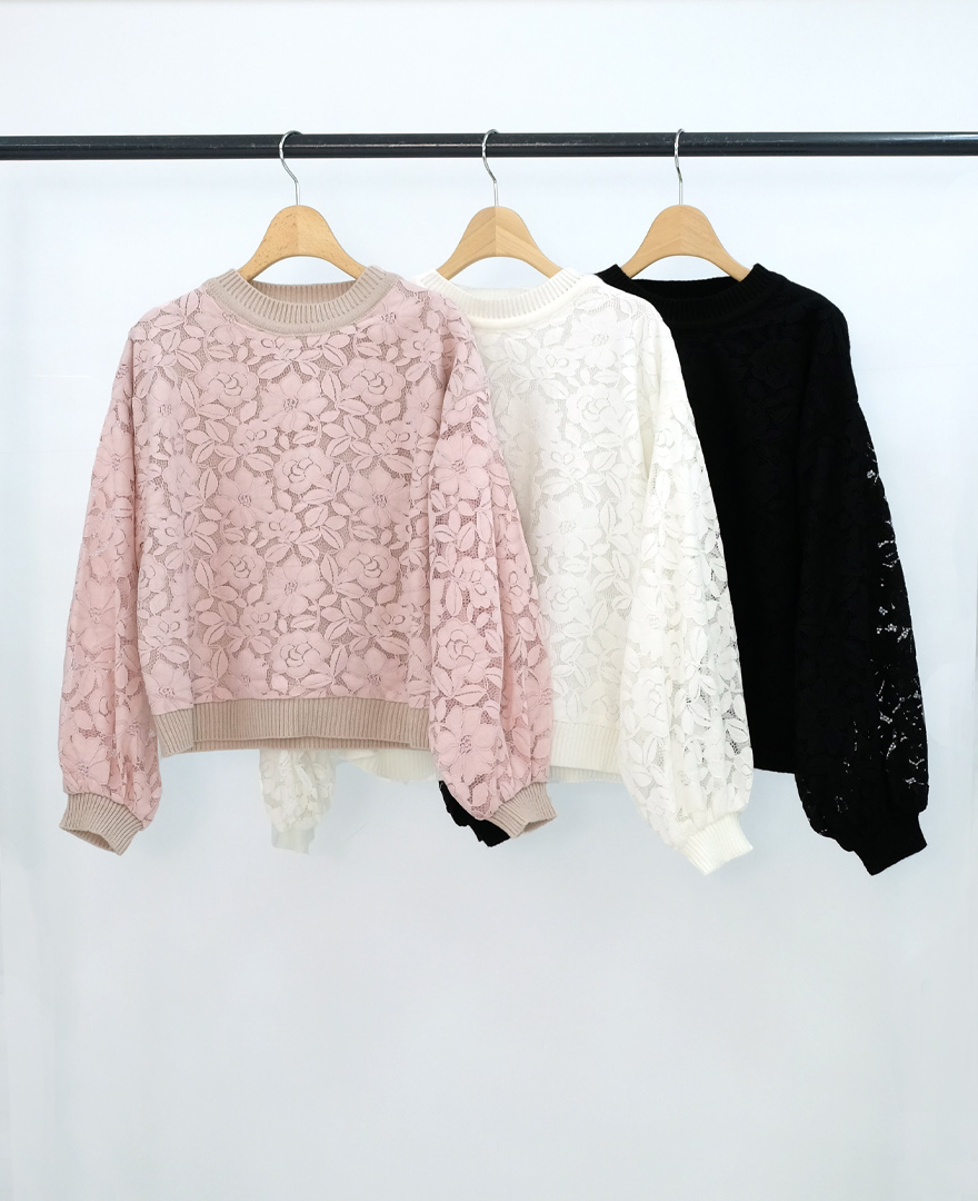 総レースデザインが可愛らしいニットプルオーバー。
