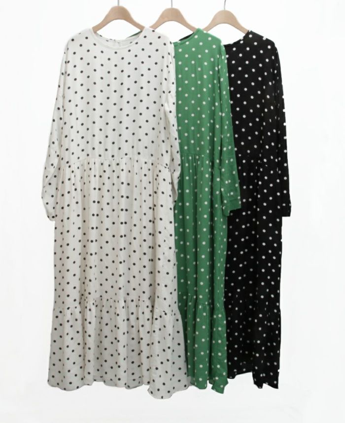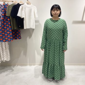 少し大きめのドットがキュートなロングワンピ。