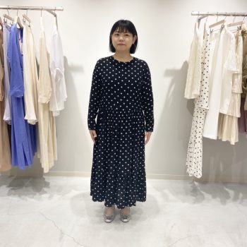 少し大きめのドットがキュートなロングワンピ。