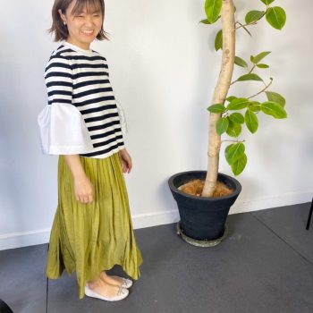 ボーダー柄と、鮮やかなグリーンのスカートとの組み合わせが可愛かったですね♪