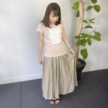 マットな光沢が上品で、歩くたびヒラヒラ揺れるシルエットがとても綺麗です。
