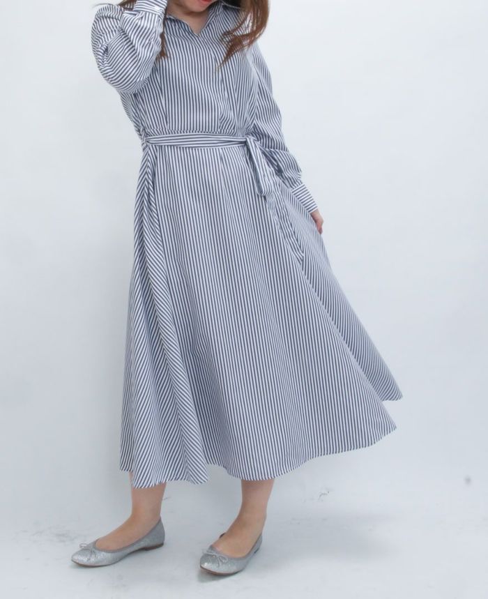 タイトシルエット&ミモレ丈の長さで甘さ控えめのデザインです。