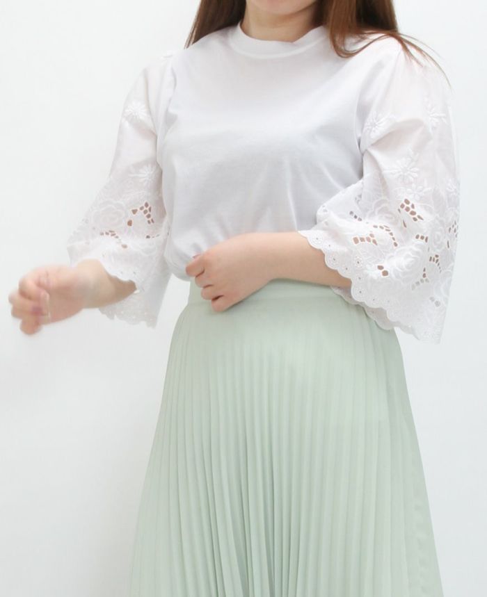 レース部分は上品なバラ柄になっていて、シンプルな中にもエレガントな印象に。