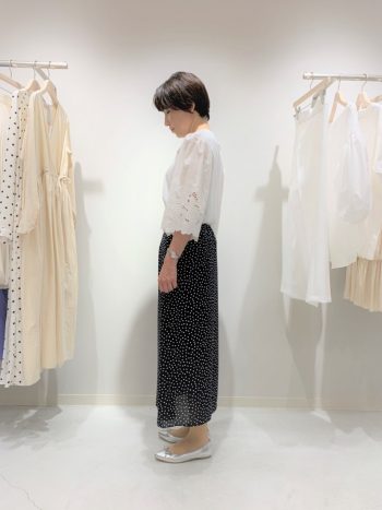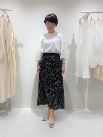 スタッフ身長:158cm 着用カラー:トップス/ホワイト、スカート/ブラック