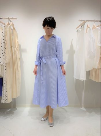 胸元が程よく開いたデザインが女性らしく、襟付きできちんと感も。