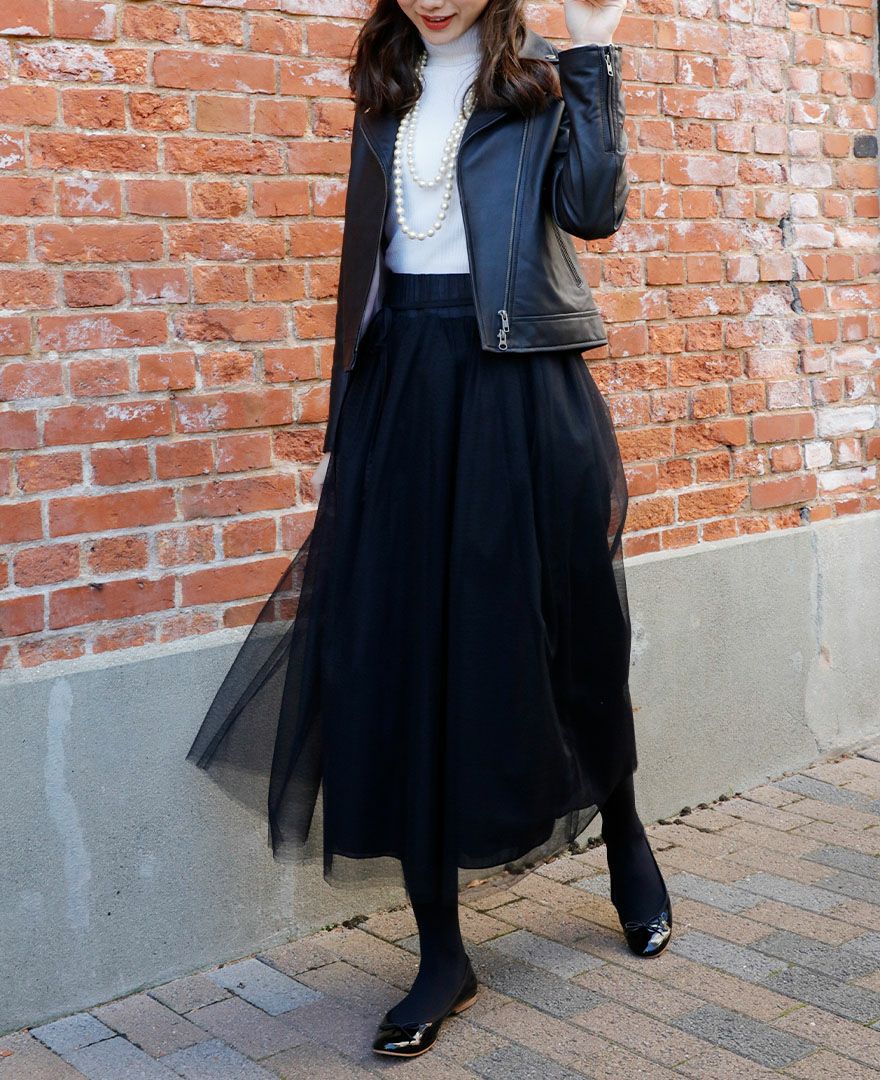 スタッフ身長:159cm 着用:トップス/ブラック、スカート/ブラック