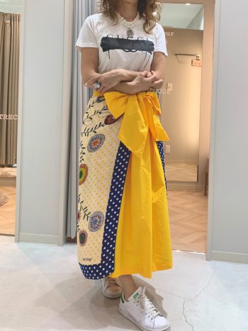 スタッフ身長:163cm 着用:スカート/イエロー、トップス・スカーフ/私物