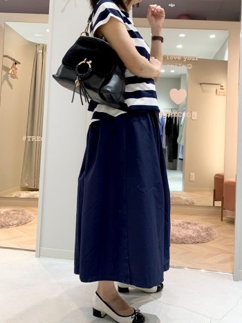 スタッフ身長:159cm 着用:トップス/ネイビー×ブラック、スカート/ネイビー