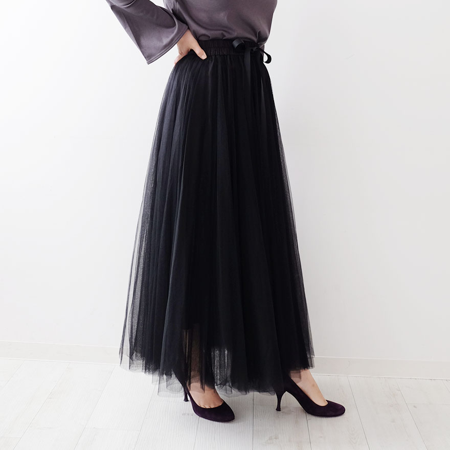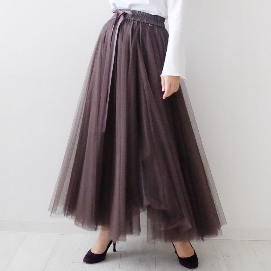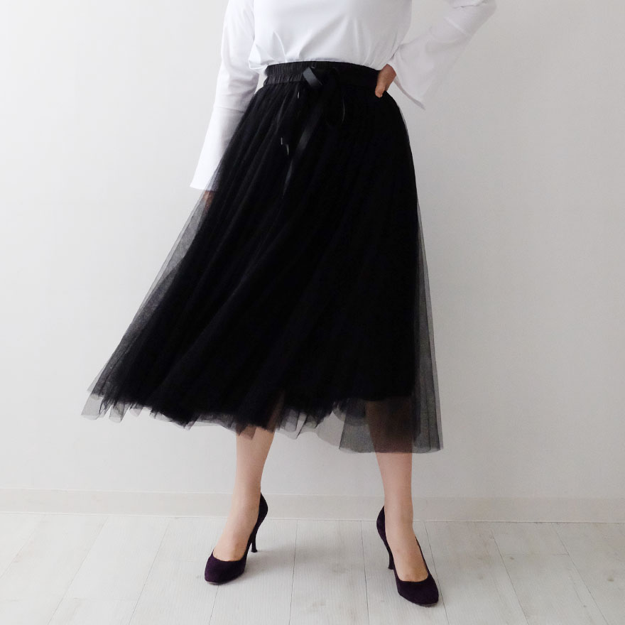 ふんわりエアリーなチュールを重ねた、ボリューム控えめのチュールスカート。