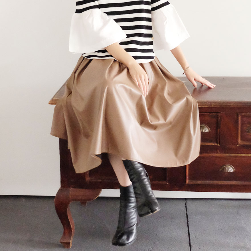 神戸•山の手シリーズの新作、フェイクレザースカート。