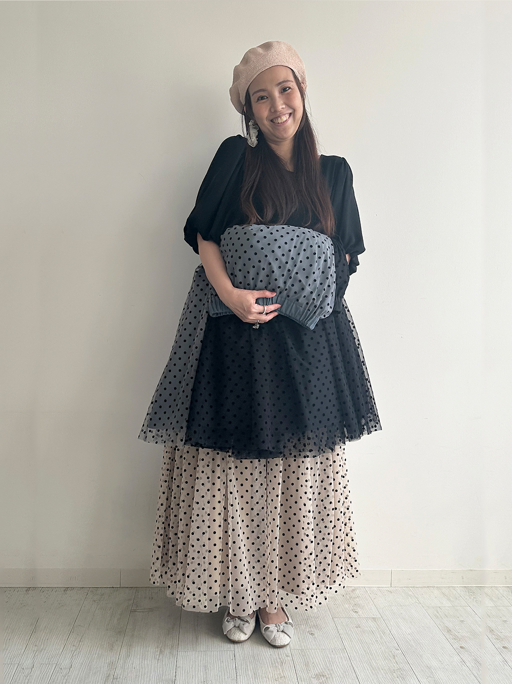 スタッフみきが、全カラーリアルバイした本気でオススメしたいアイテムは、リバーシブルドットチュールスカートです♡